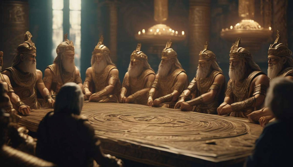 I många kulturer utgjorde gudarnas dekret den grundläggande basen för lagstiftning. Deras vilja manifesterades i lagar som styrde samhällets funktioner och relationer mellan individer.